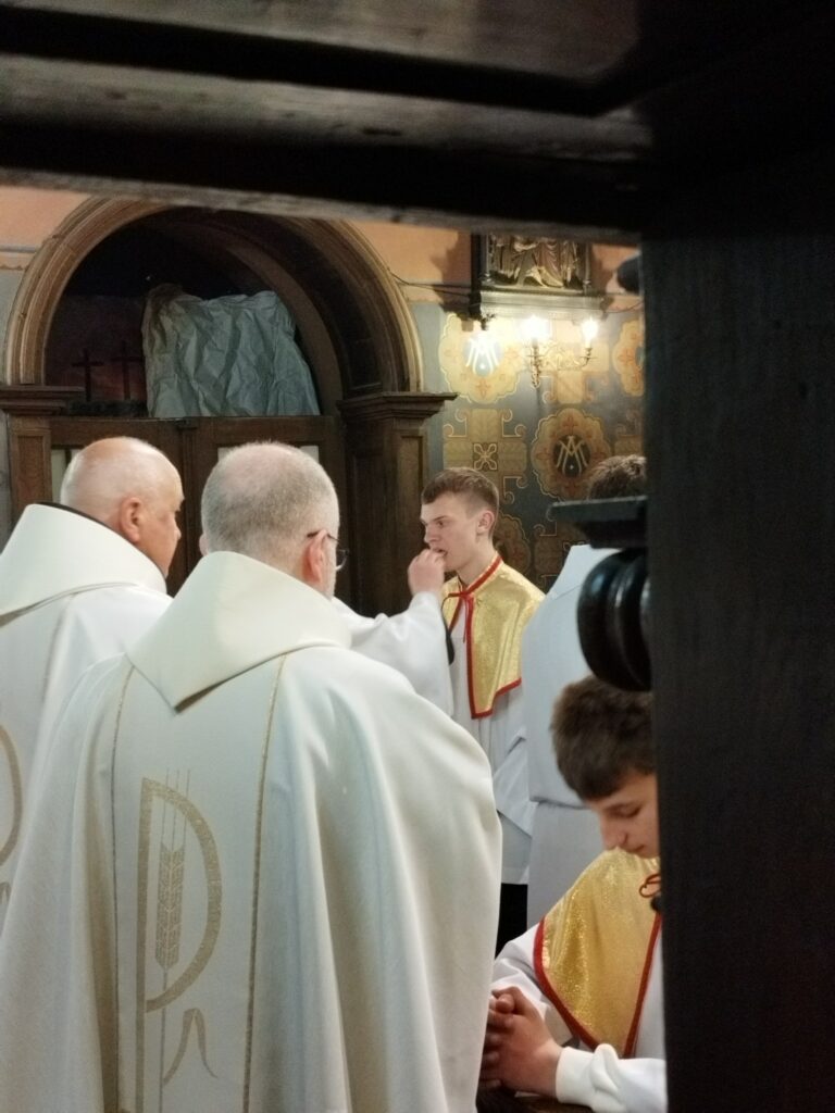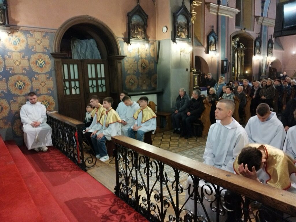 • niedziele i święta: 15 minut przed każdą Mszą świętą